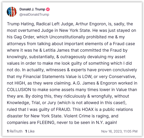 [097]Donald J. Trump: Trump Hating, Radical Left Judge, Arthur Engoron, is, sadly, the most overturned Judge in New York State he & Letitia James that committed the Fraud by knowingly, substantially, & outrageously devaluing my asset values in order to make me look guilty of something which I did not do