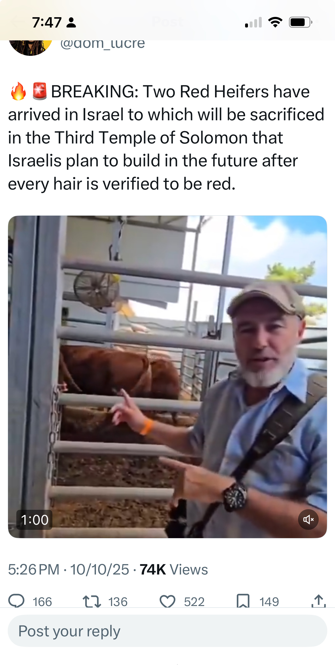 [087]Two Red Heifers have arrived in Israel to which will be sacrificed in the Third Temple of Solomon that Israelis plan to build in the future