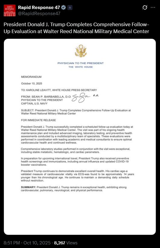 [089]President Donald J. Trump Completes Comprehensive Follow-Up Evaluation at Walter Reed National Military Medical Center