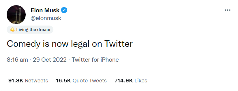[031]@elonmusk: To be super clear, we have not yet made any changes to Twitter’s content moderation policies and other Head twit twats media link media link media link