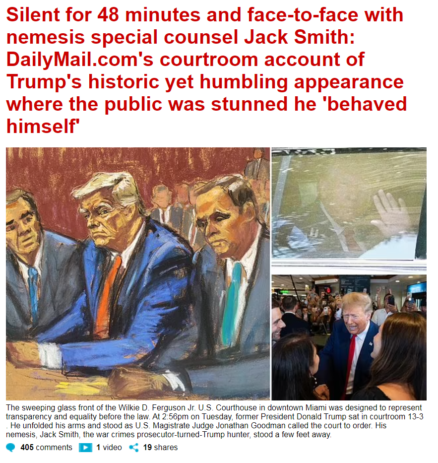 [005]President Trump is now en route to the Miami federal courthouse to be arraigned on federal charges brought by the Biden DOJ related to classified documents media link media link