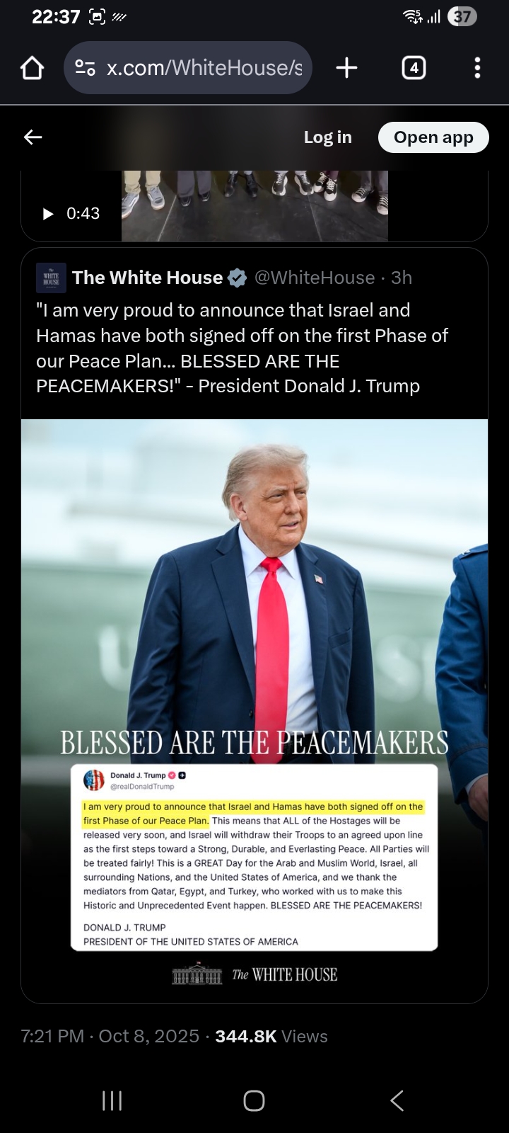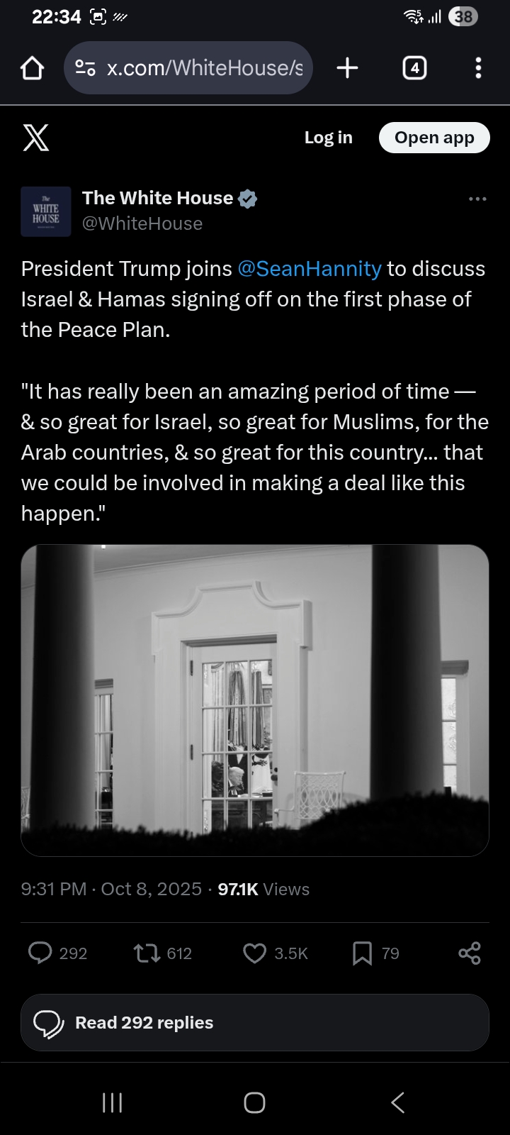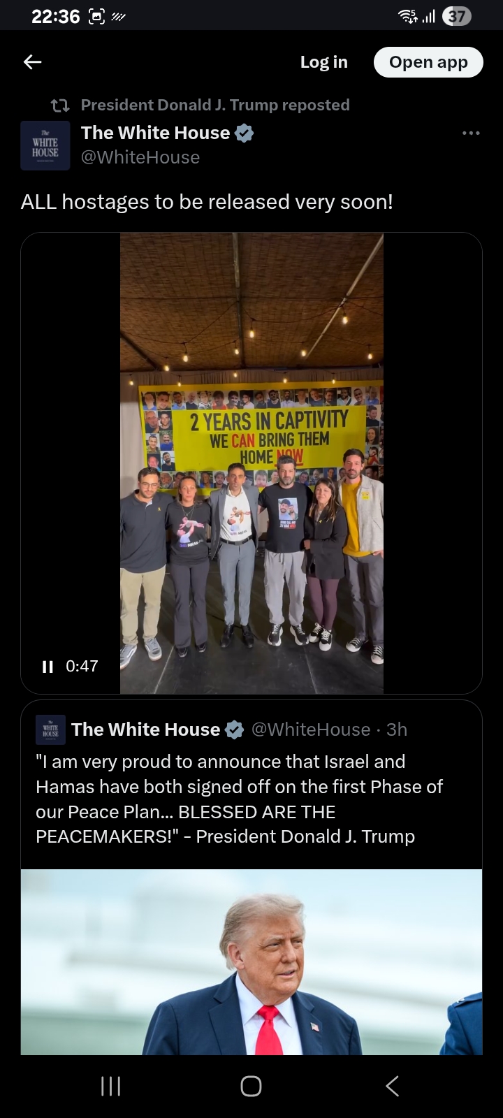 [095]The White House - President Trump joins @SeanHannity to discuss Israel & Hamas signing off on the first phase of the Peace Plan media link media link media link media link media link media link media link