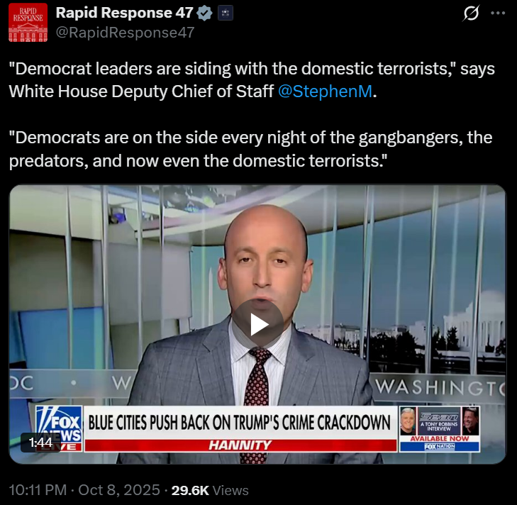 [097]"Democrat leaders are siding with the domestic terrorists," says White House Deputy Chief of Staff @StephenM media link media link media link media link