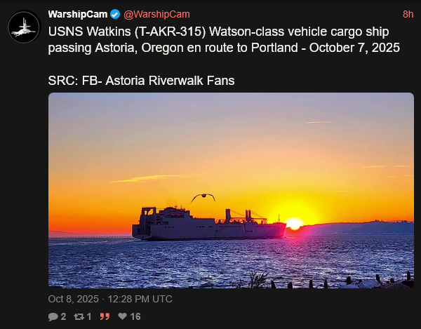 [049]USNS Watkins (T-AKR-315) Watson-class vehicle cargo ship en route to Portland media link media link